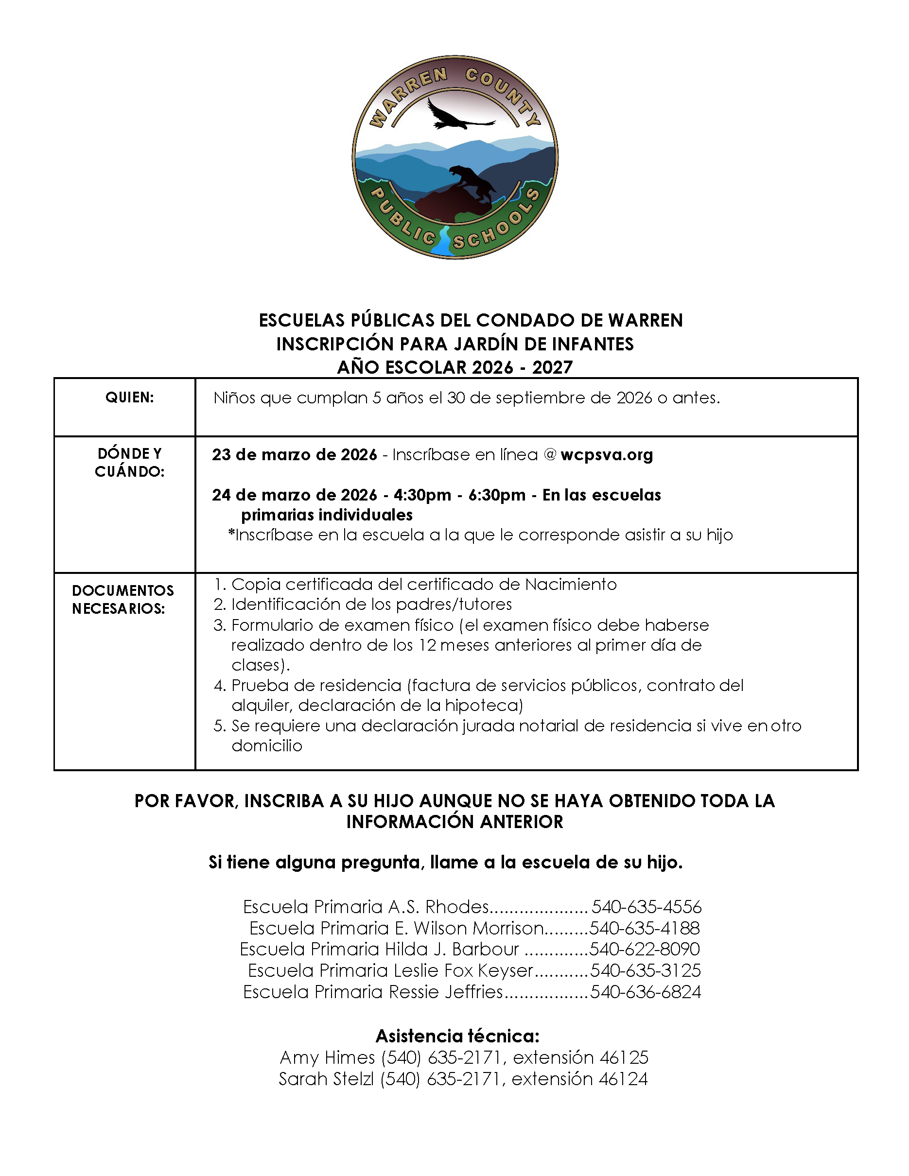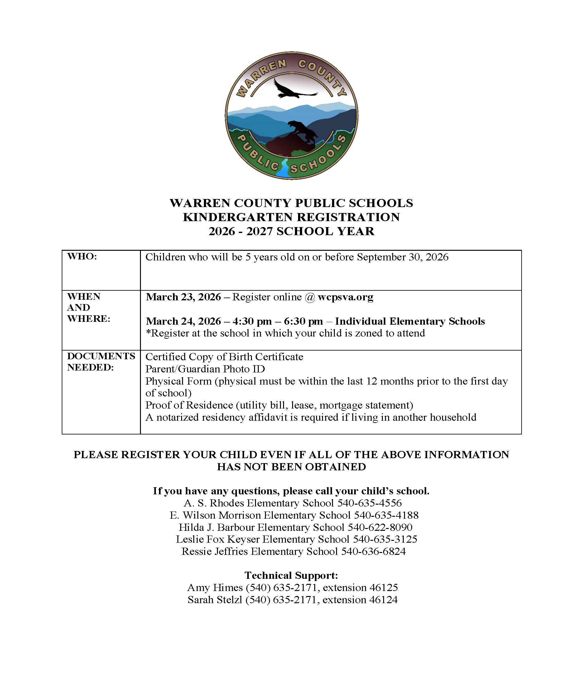 PLEASE REGISTER YOUR CHILD EVEN IF ALL OF THE ABOVE INFORMATION HAS NOT BEEN OBTAINED